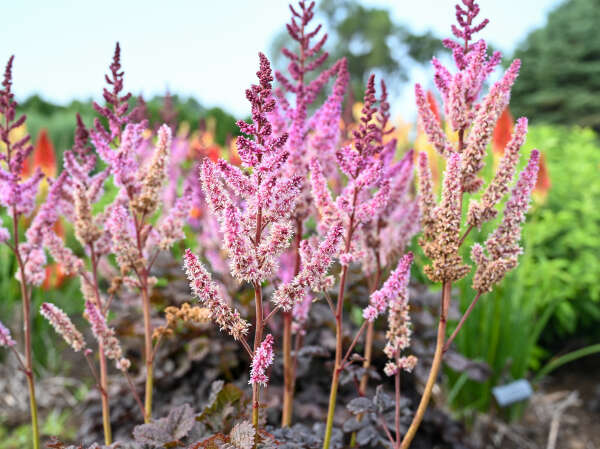 An excellent complement to hostas and woodland perennials, ‘Sun King' emerges mid-spring with bright gold leaves held on nicely contrasting reddish brown stems. If given at least a few hours of sun a day, the foliage will remain yellow all summer. In heavier shade, the foliage ranges from chartreuse to lime green.